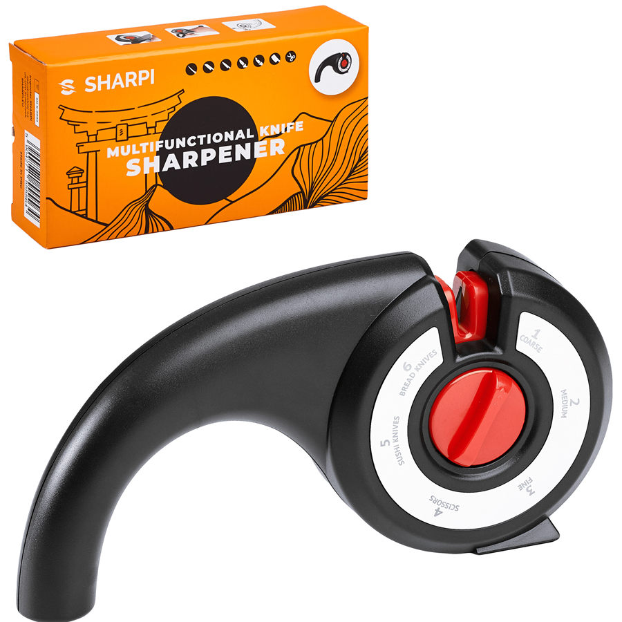 Sharpi je inovativno, multifunkcionalno oštrenje noževa, savršeno za svakodnevnu upotrebu u kućnoj kuhinji. Dizajniran imajući na umu različite potrebe za oštrenjem, Sharpi će efikasno oštriti kuhinjske noževe, kao i kuhinjske makaze, noževe za hleb i suši noževe. Odlikuje ga stabilna, neklizajuća osnova i ergonomska ručka koja obezbeđuje sigurnost i udobnost upotrebe.