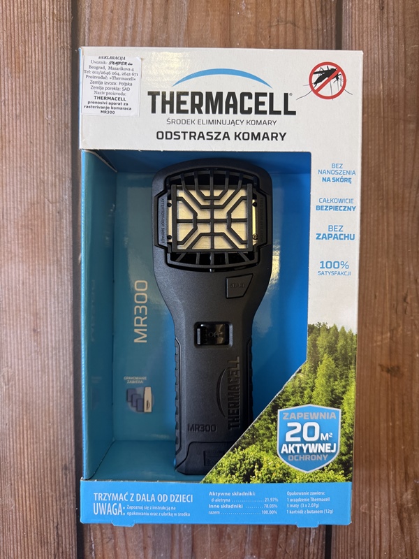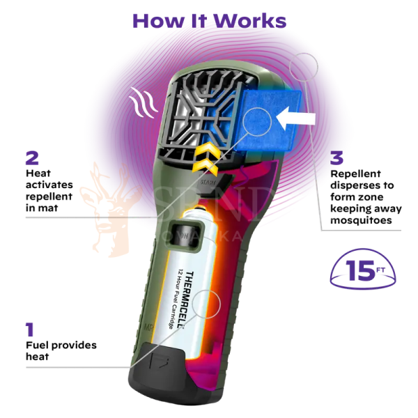 Prenosivi aparat za rasterivanje komaraca je jednostavan za upotrebu i pruža sate odbrane od komaraca bez mirisa i nereda do 20 kvadrata. Bez baterija ili kablova, prenosivi aparat je idealan za lovce , kao i za avanture u pokretu kao što su pecanje, kampovanje, planinarenje i još mnogo toga. Uključuje jedan aparat, jedan 12-časovni uložak za gorivo i tri 4-časovne tablete.